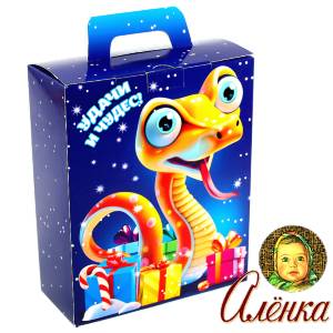Яркая упаковка наполнена вкусными конфетами от знаменитой фабрики Красный Октябрь и лучшими сладостями от Алёнки.