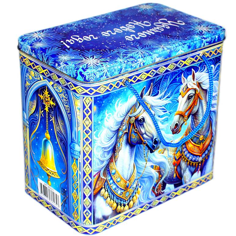 Сладкий новогодний подарок в жестяной упаковке весом 1400 грамм